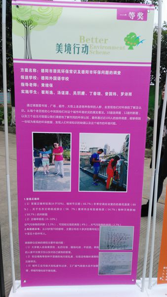 德陽(yáng)市千山街三段87號(hào) 近日,在由四川省環(huán)境保護(hù)廳主辦、四川省環(huán)境保護(hù)宣傳教育服務(wù)中心承辦的第四屆四川省“美境行動(dòng)”項(xiàng)目實(shí)施報(bào)告評(píng)審中,我校高一年級(jí)學(xué)生瞿思逸、湯謹(jǐn)源、吳玥瀟、丁春瑞、曾國(guó)瑋、羅詩(shī)雨等六位同學(xué)精心策劃的實(shí)施報(bào)告《德陽(yáng)市居民環(huán)保常識(shí)及德陽(yáng)市環(huán)保問題的調(diào)查》獲得一等獎(jiǎng)(全省僅五名,德陽(yáng)市唯一)。
